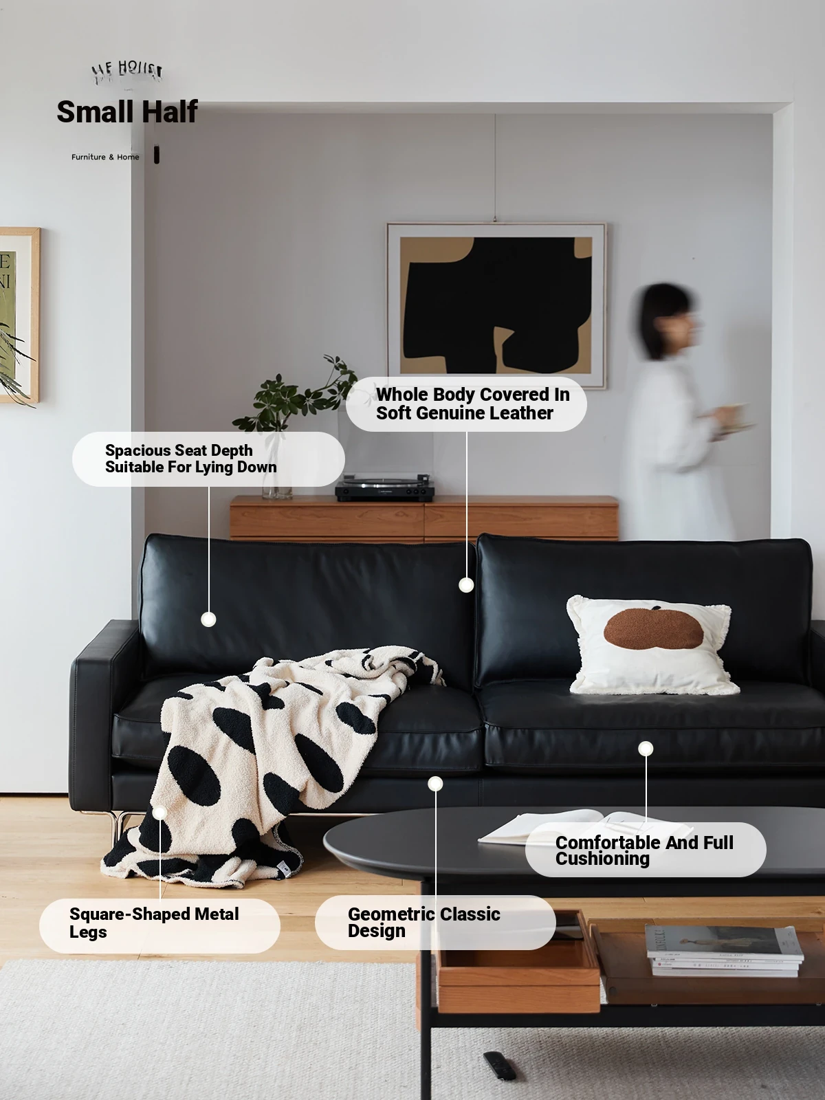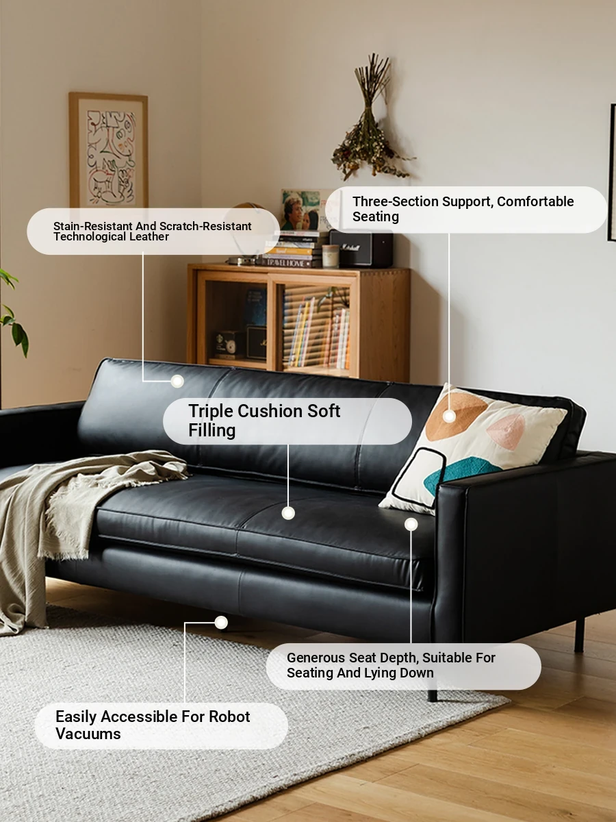 Discover Comfort and Style: Nordic Technology Leather Sofa for Compact Living Rooms - Modern Black Vintage Design, Japanese Minimalism for Three People