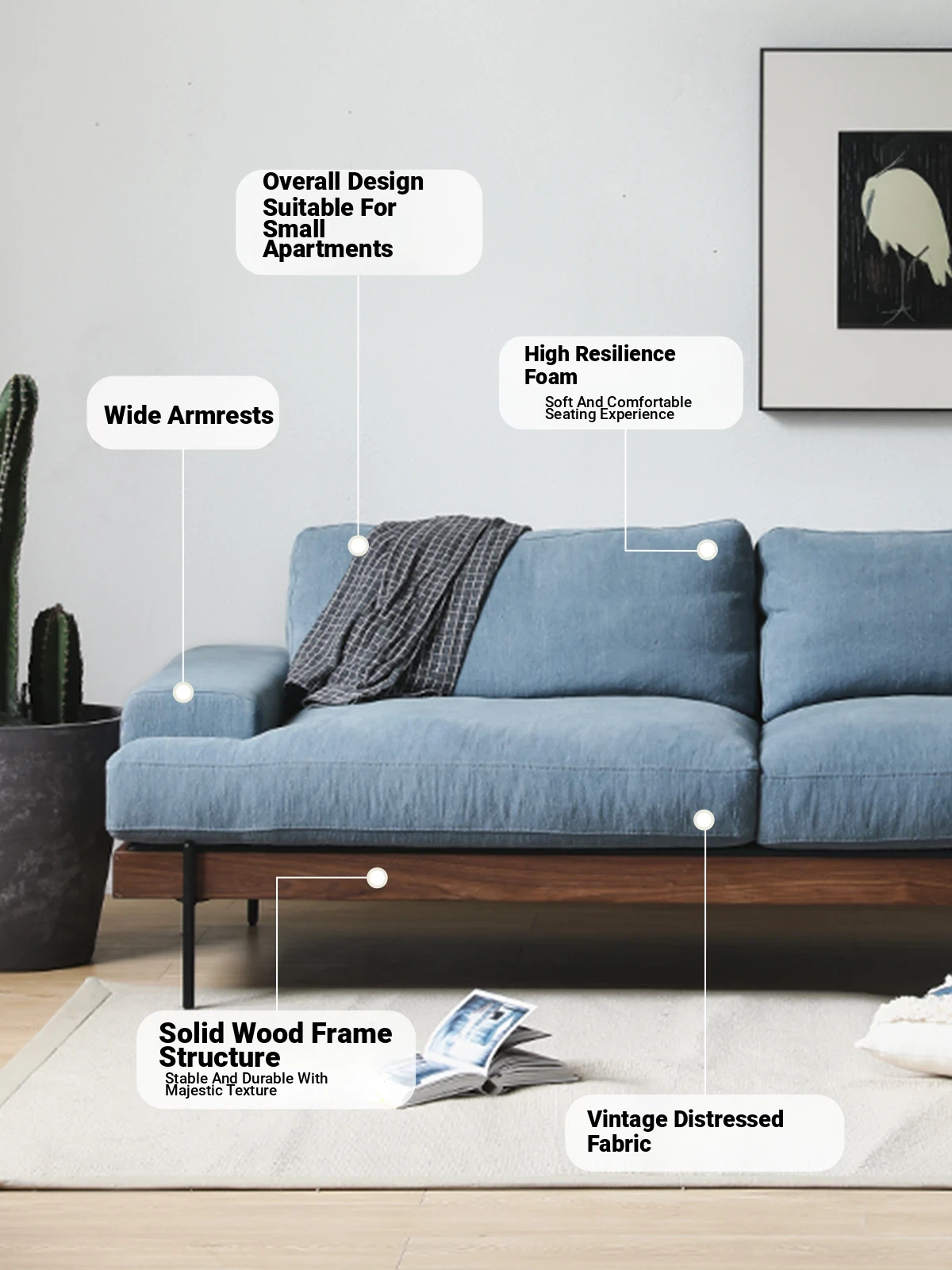 Title: Stylish Nordic Japanese Solid Wood Sofa - Compact, Removable & Washable Upholstery for Small Living Rooms