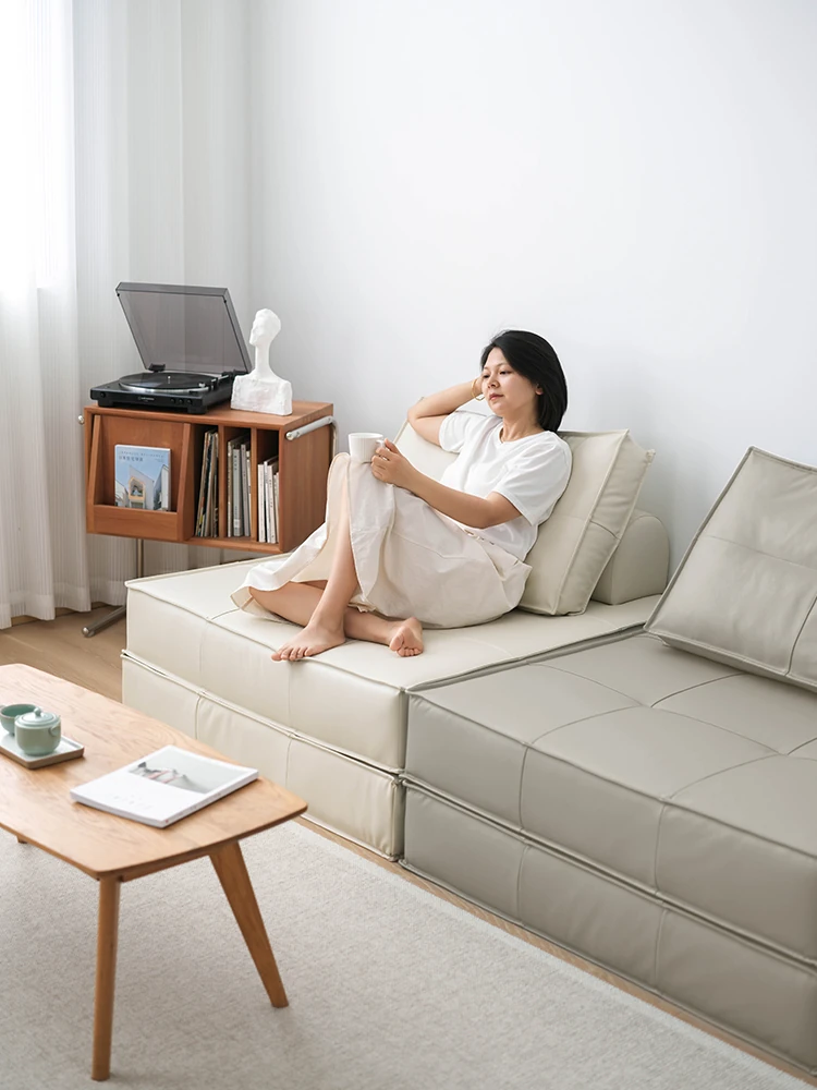 Modern Minimalist Modular Sofa Set - Faux Leather Cube Seats for Small Living Rooms, Armless and Comfy Lounge Chair