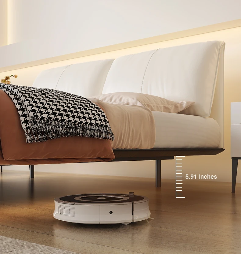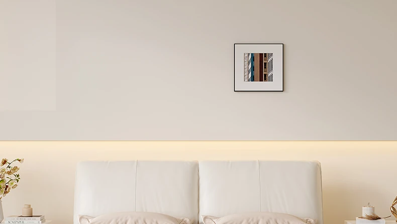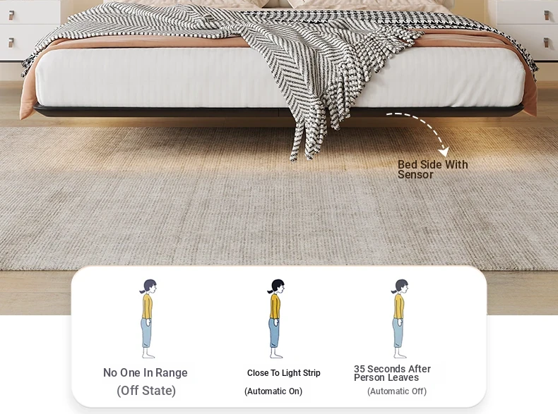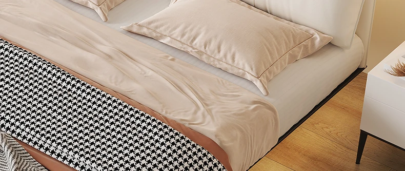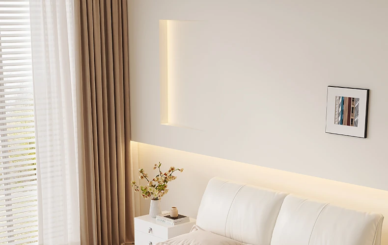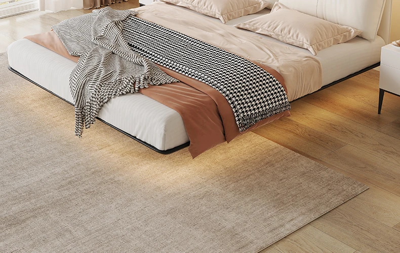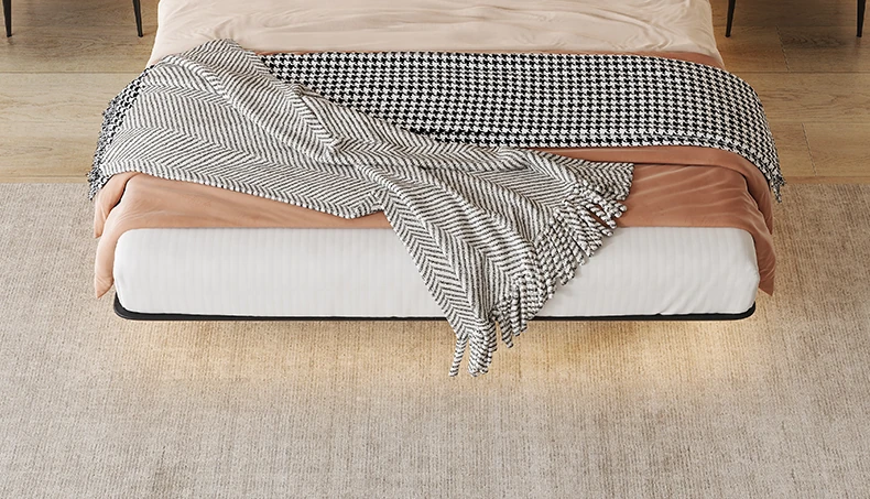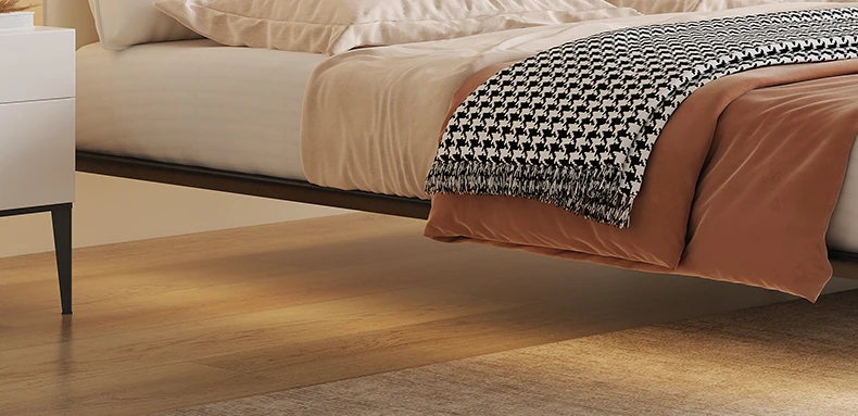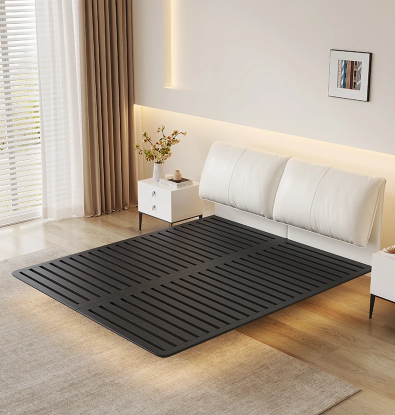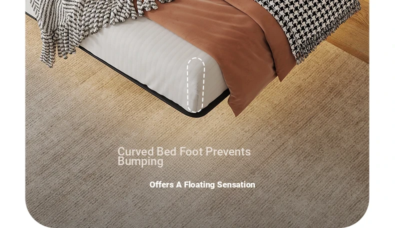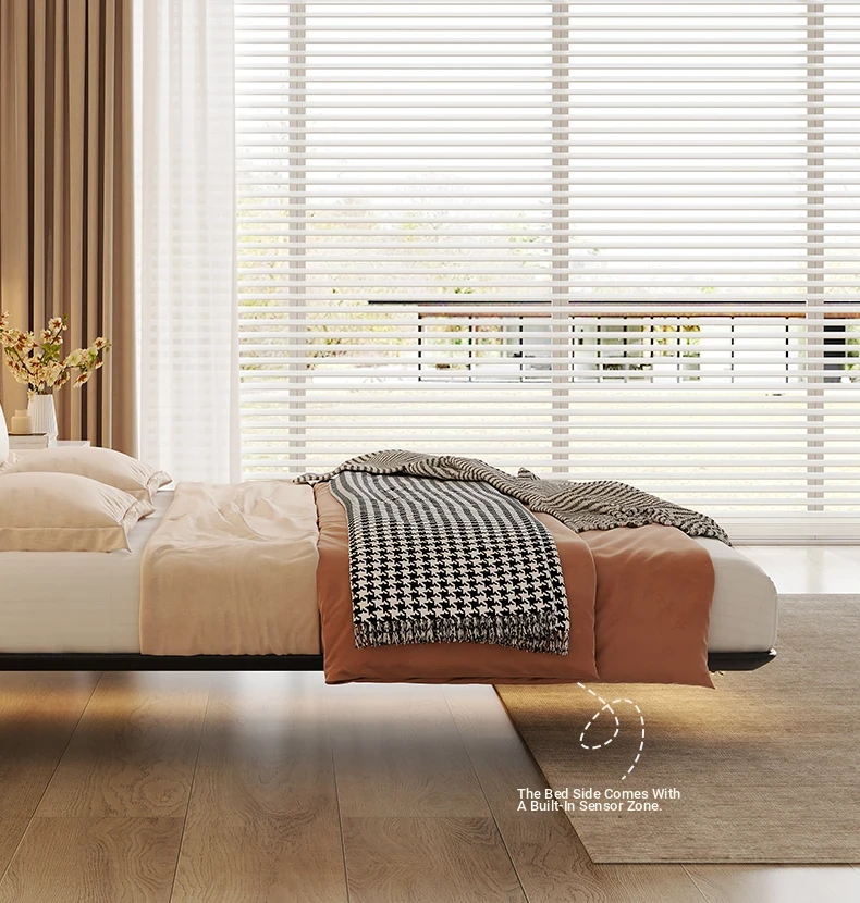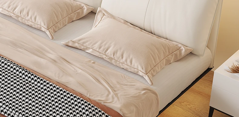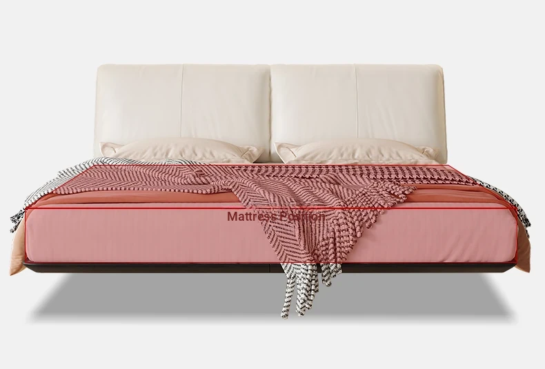 Elegant Italian Minimalist Genuine Leather Floating Bed – Modern 1.8m Soft Cream Upholstered Double Bed for Stylish Bedrooms