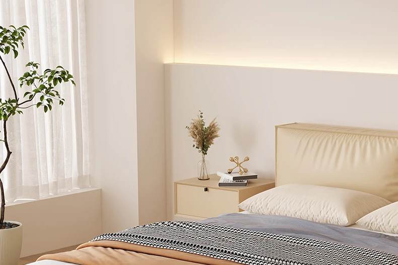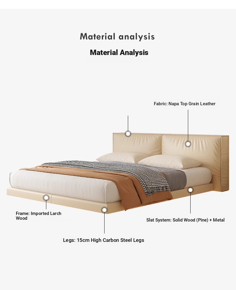 Leather bed + Coconut Palm mattress + suspended bedside table * 1