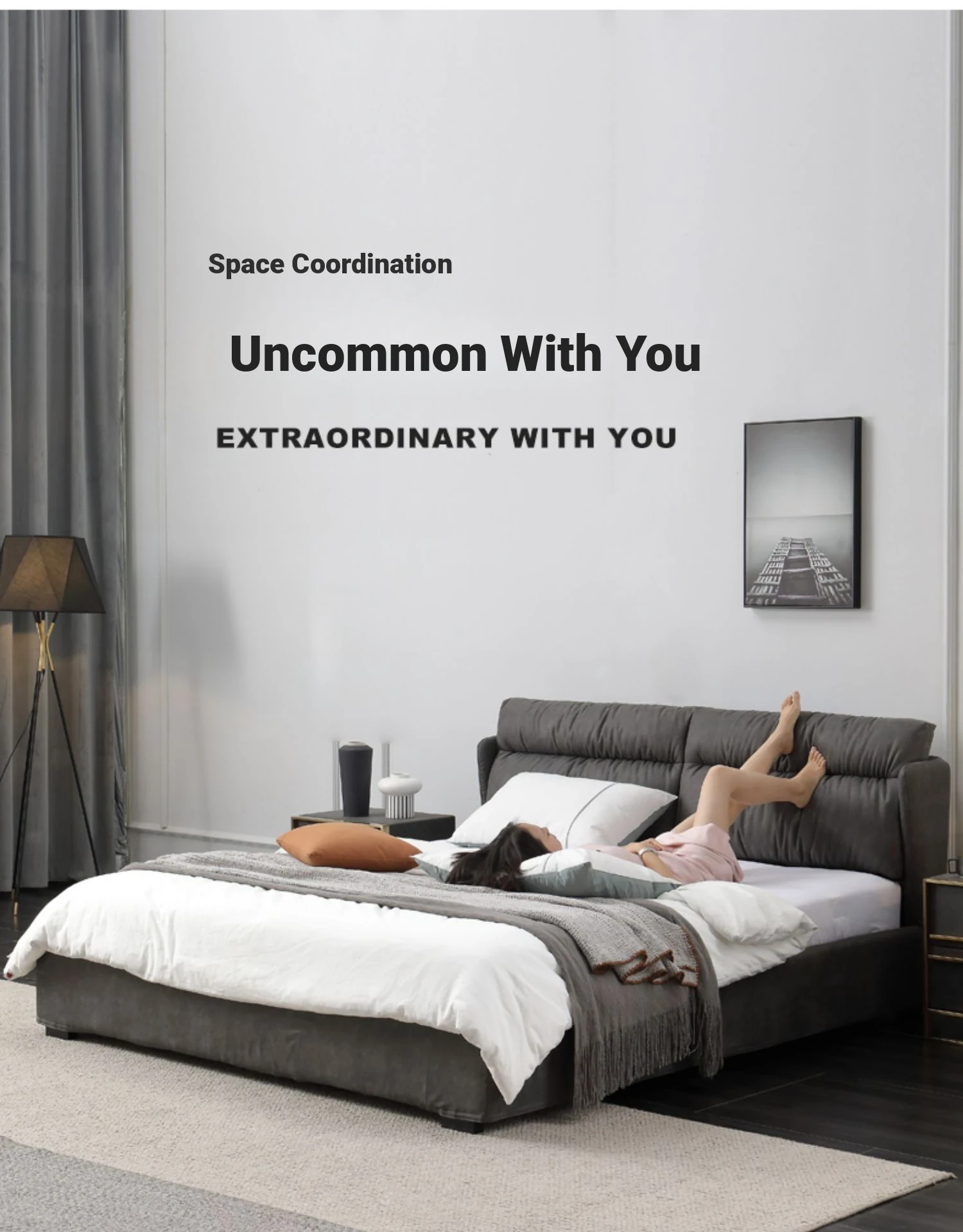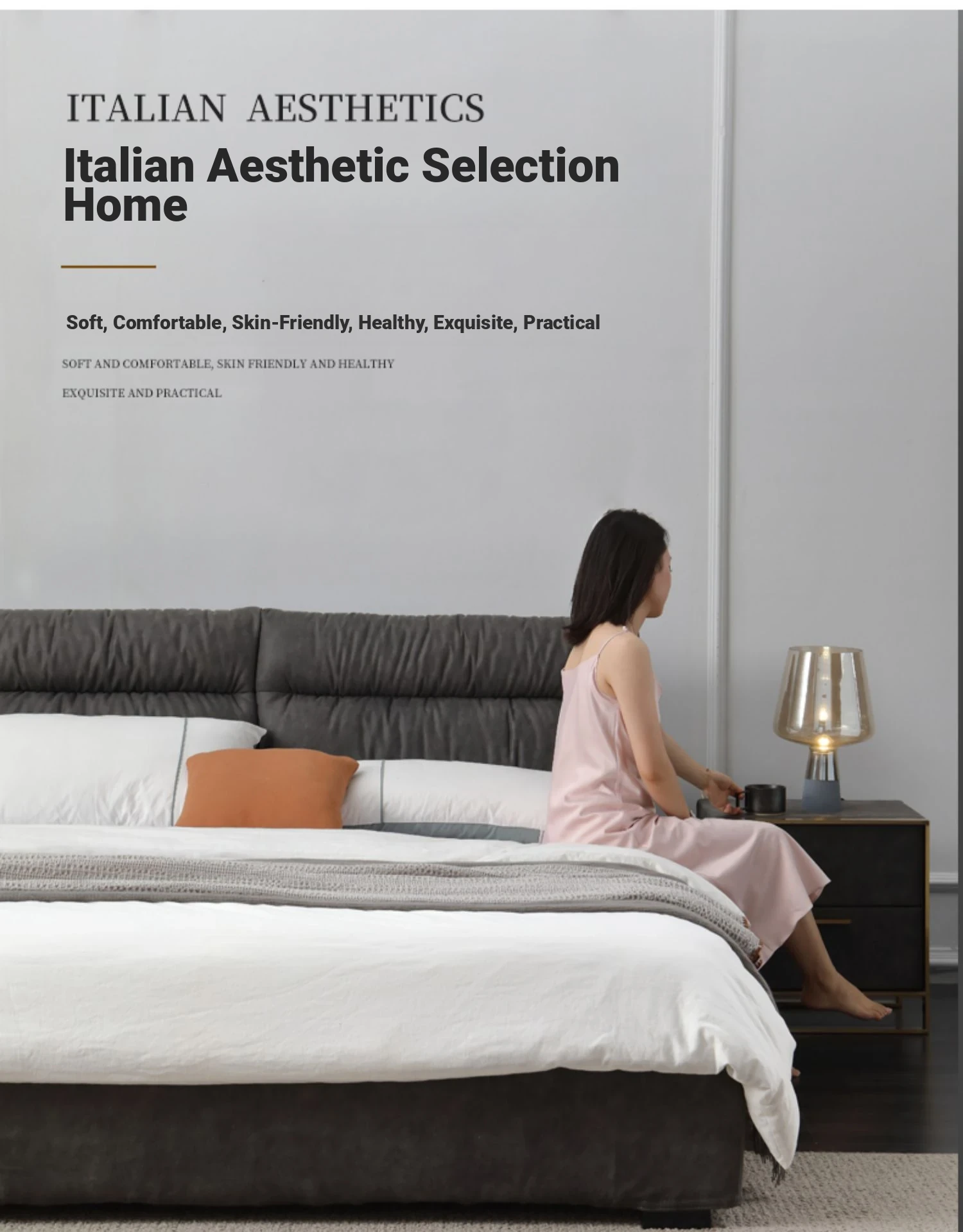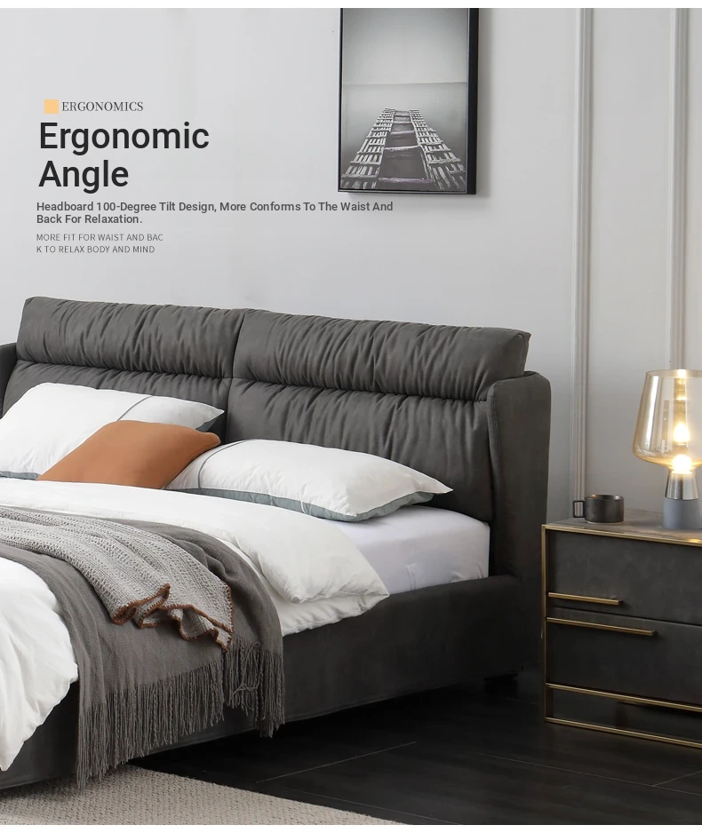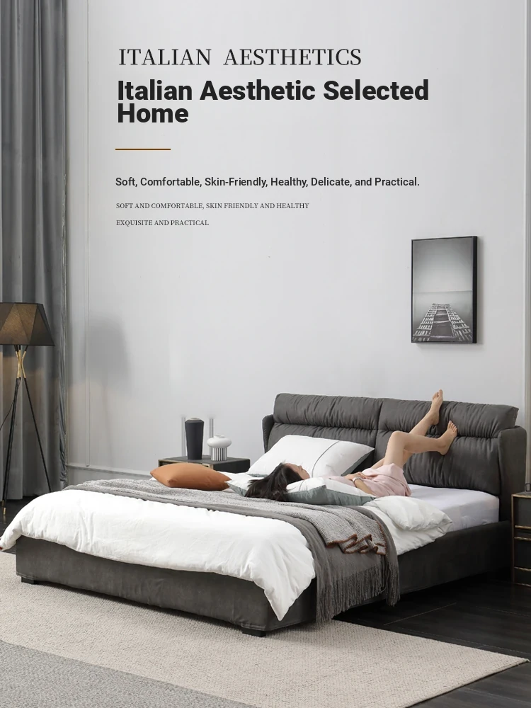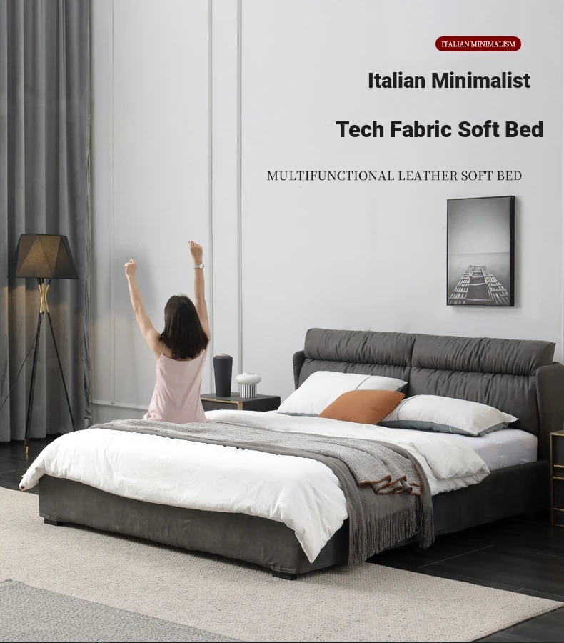 Italian Minimalist Tech Fabric Bed - Trendy Soft-Padded Double Bed 1.8m, Nordic Light Luxury Master Bedroom Wedding Bed in Ins Style