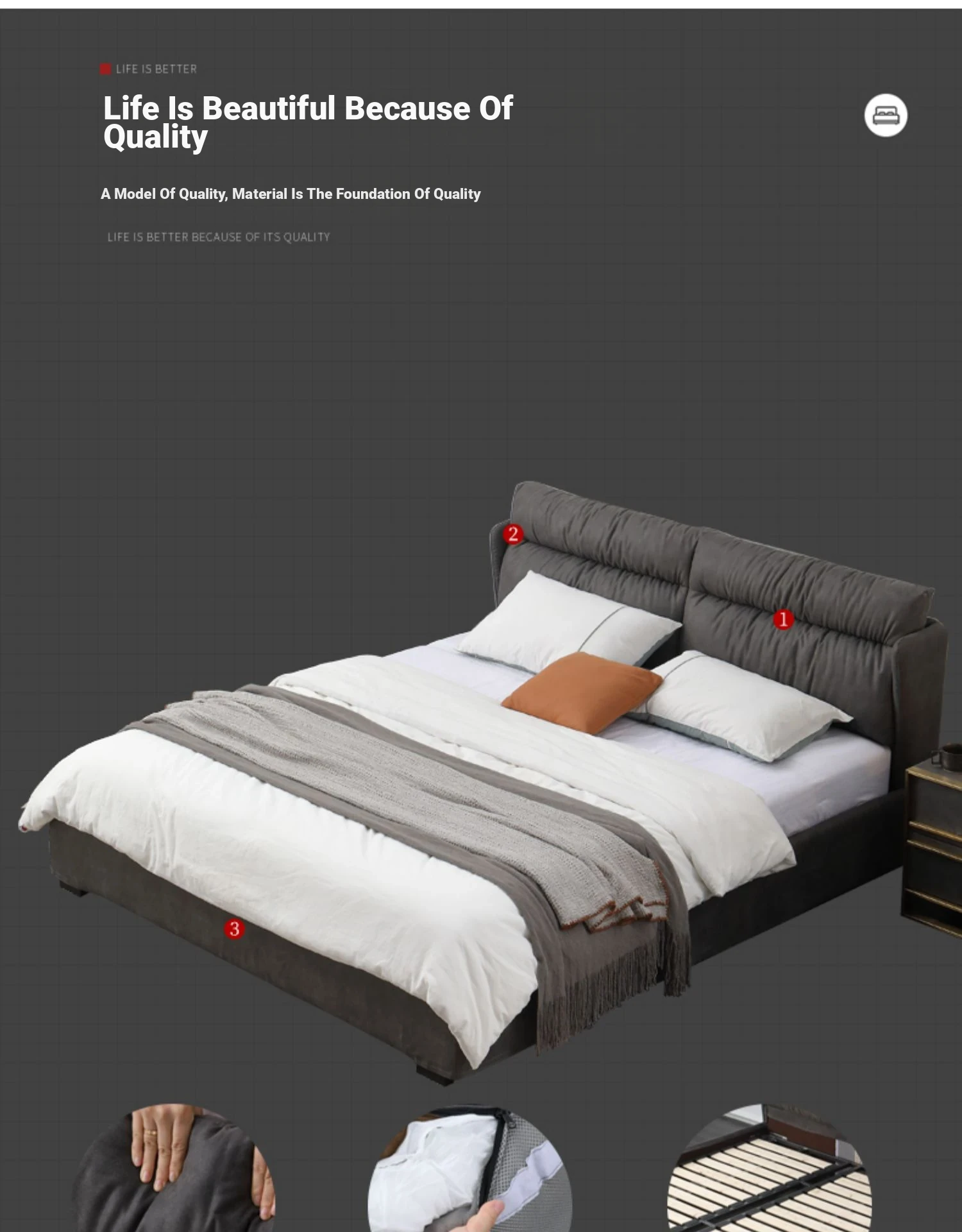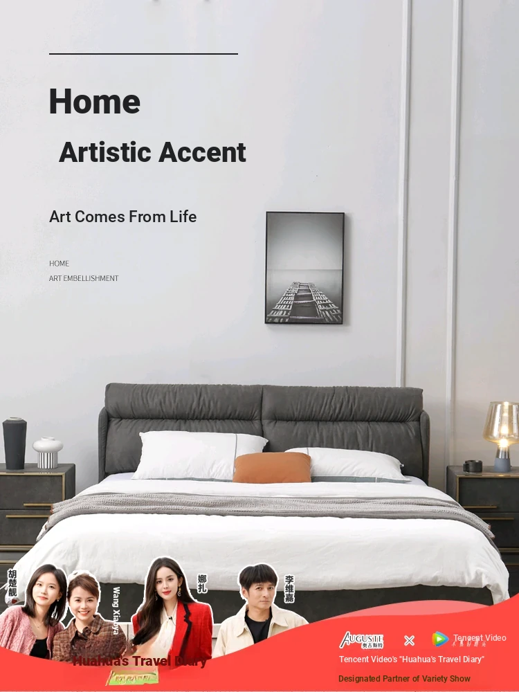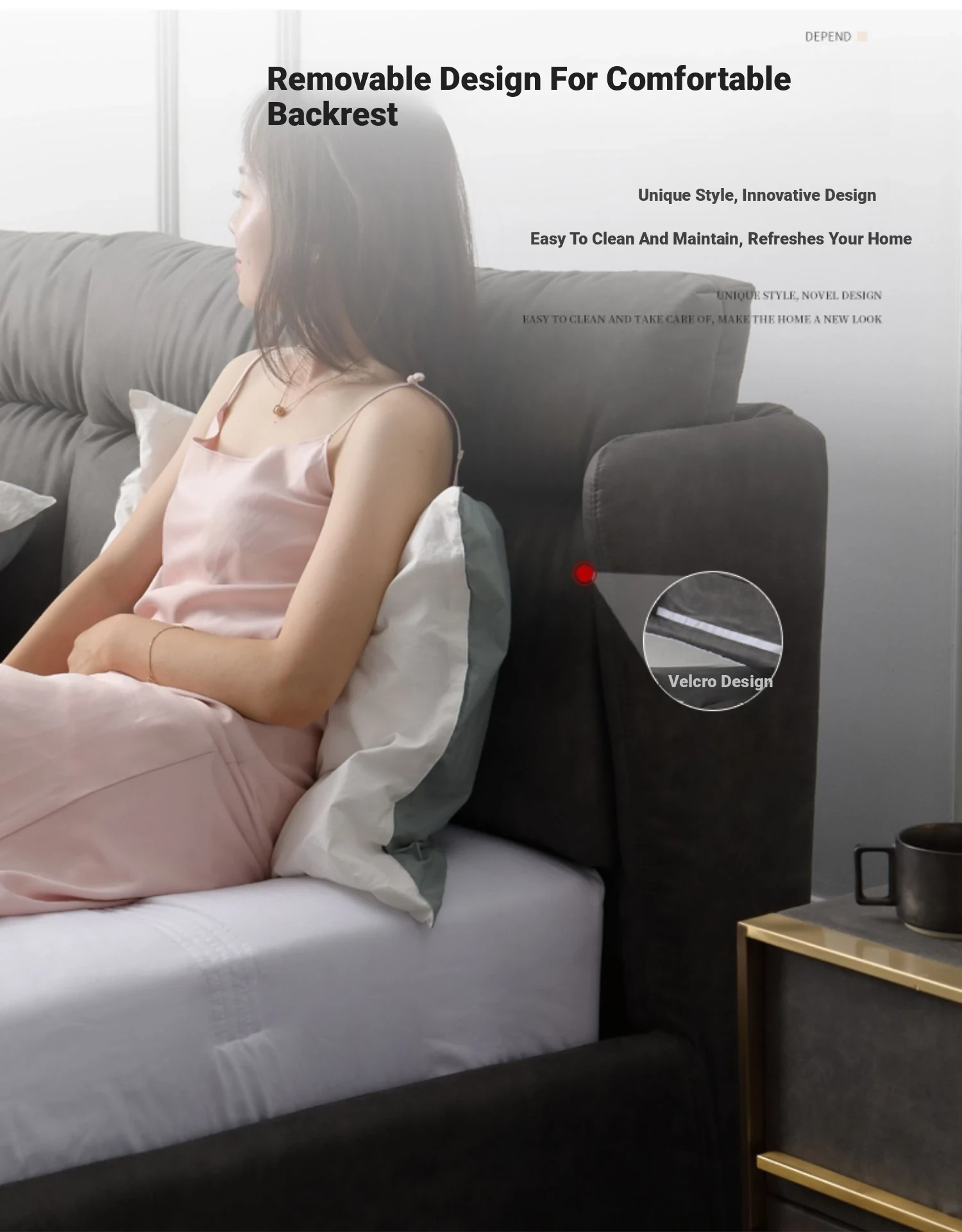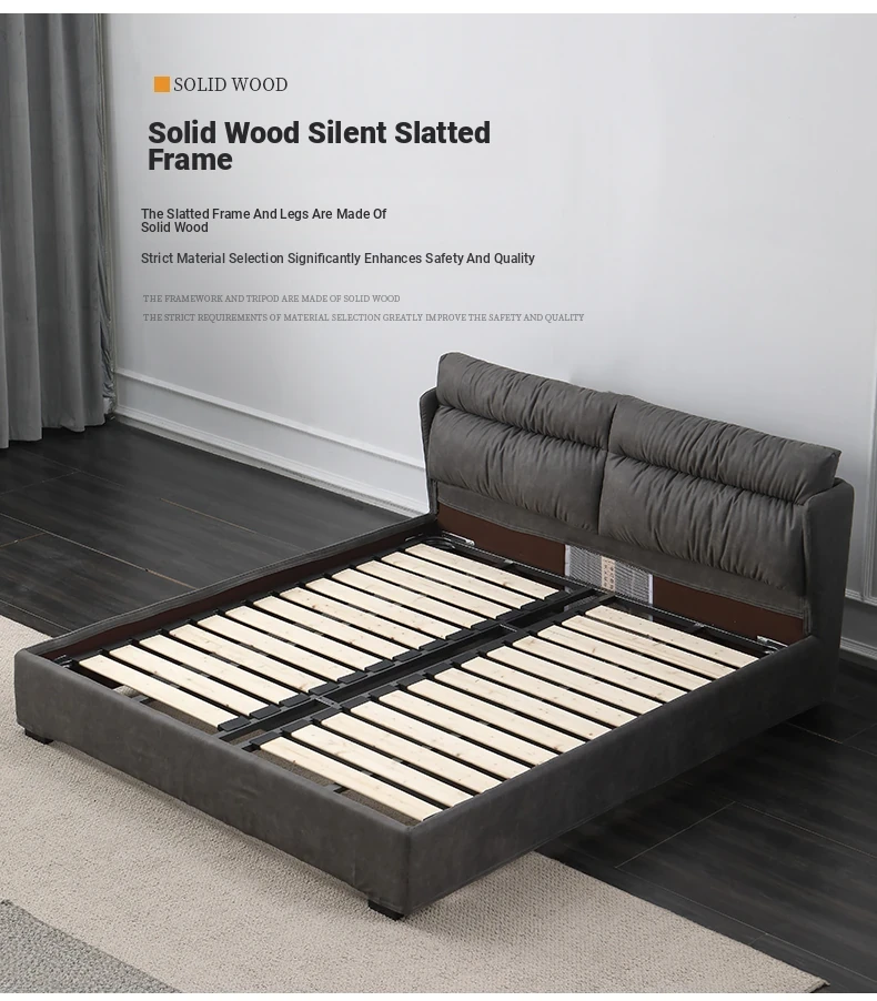 Italian Minimalist Tech Fabric Bed - Trendy Soft-Padded Double Bed 1.8m, Nordic Light Luxury Master Bedroom Wedding Bed in Ins Style
