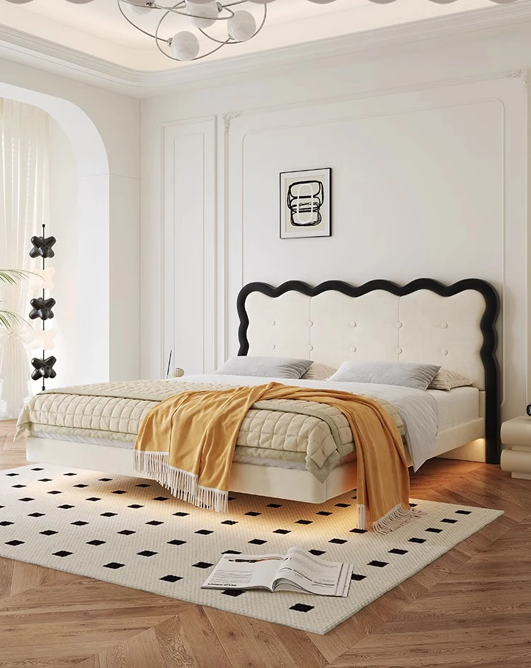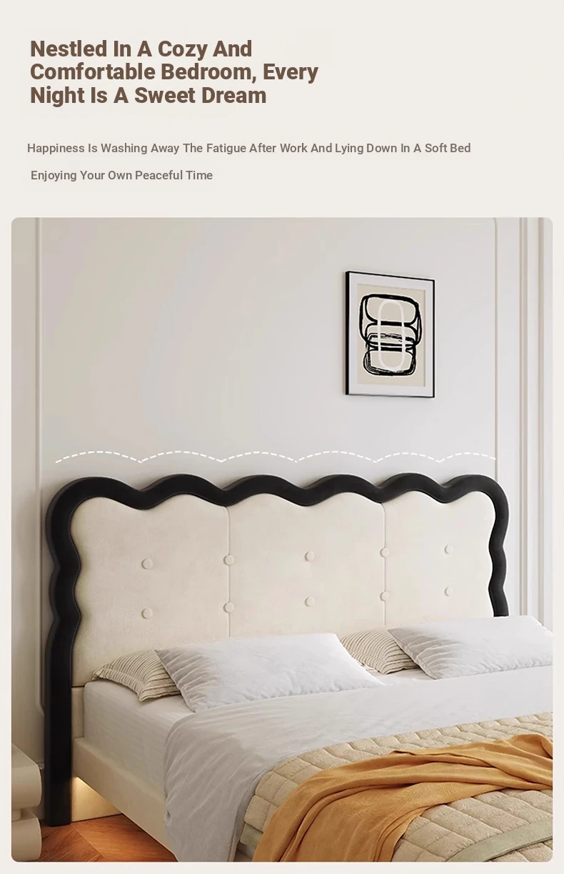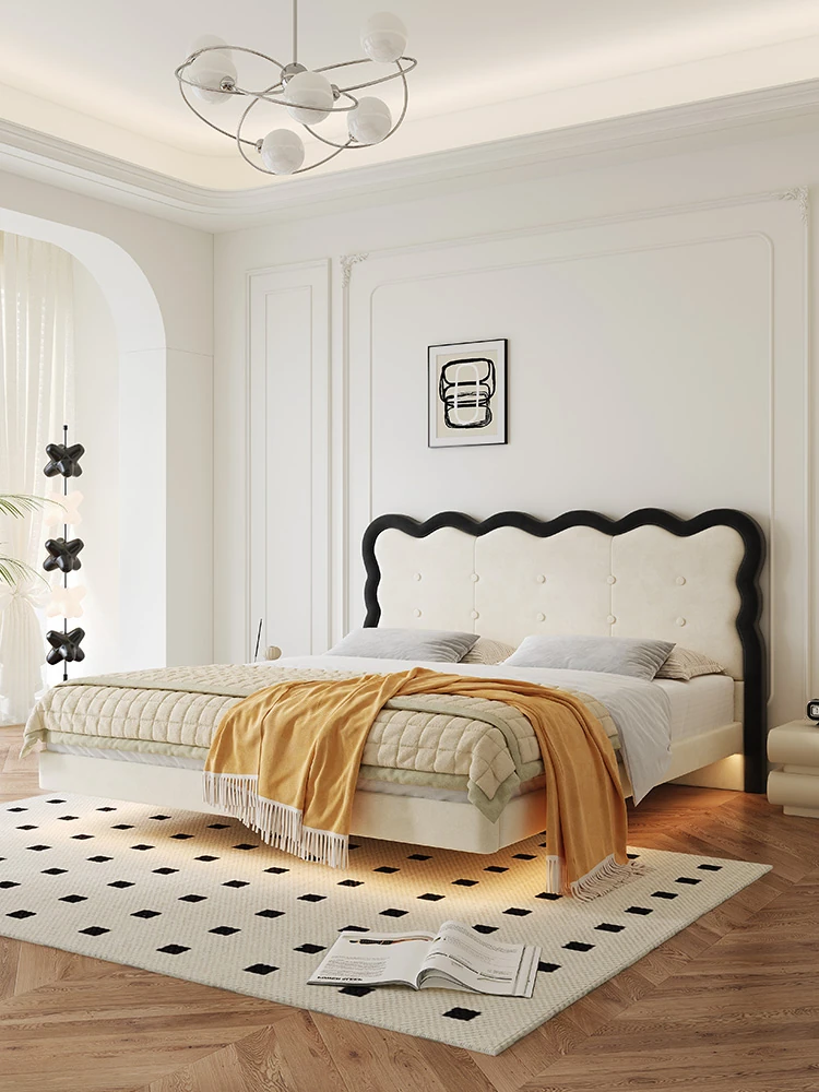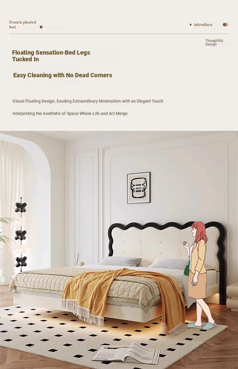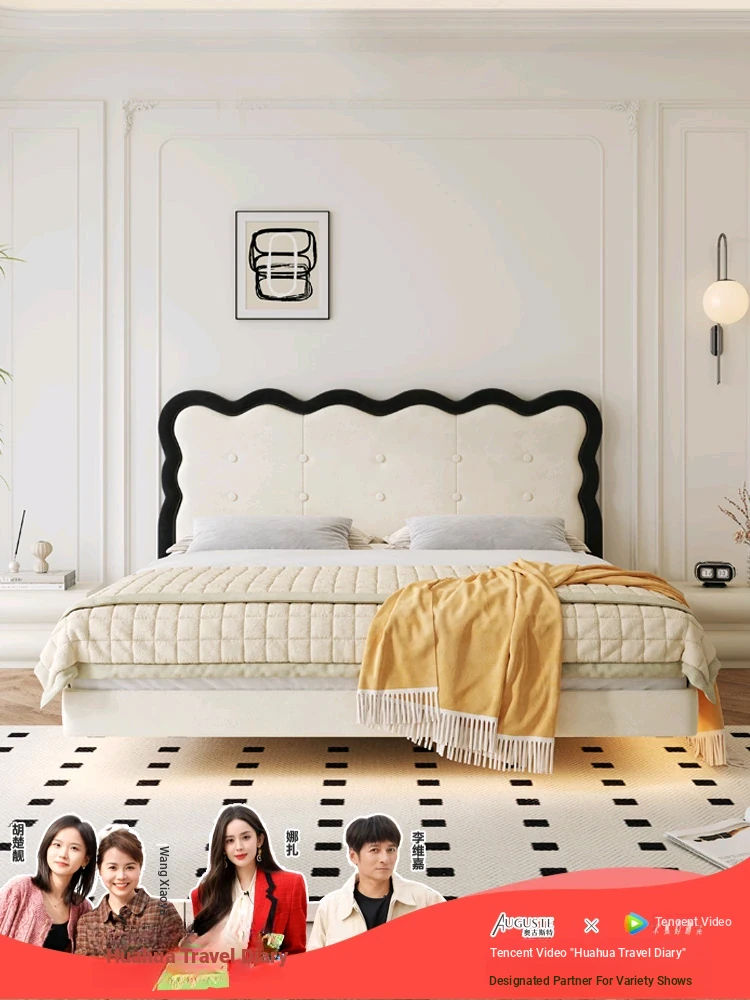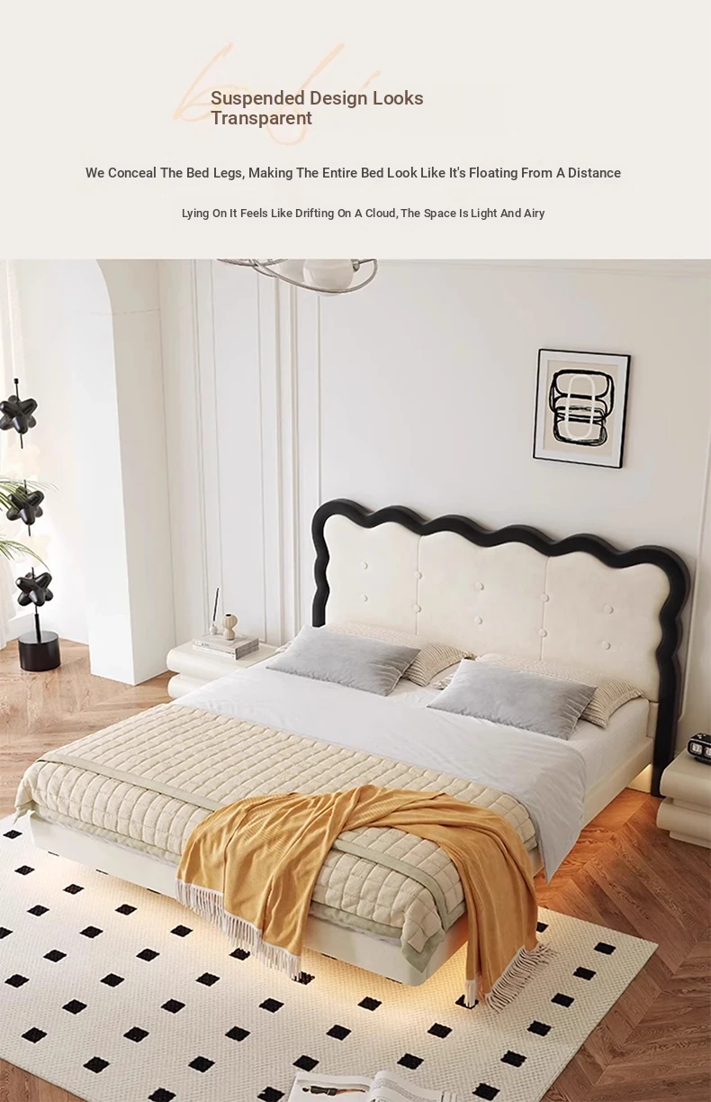 Modern French-style Upholstered Bed - 1.8m Cream Floating Frame for Master Bedroom, Soft Fabric Double Bed with Edgeless Design, Perfect for Your Home Décor.