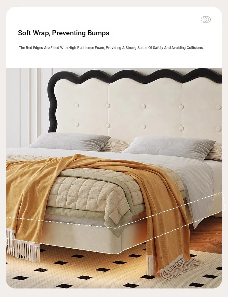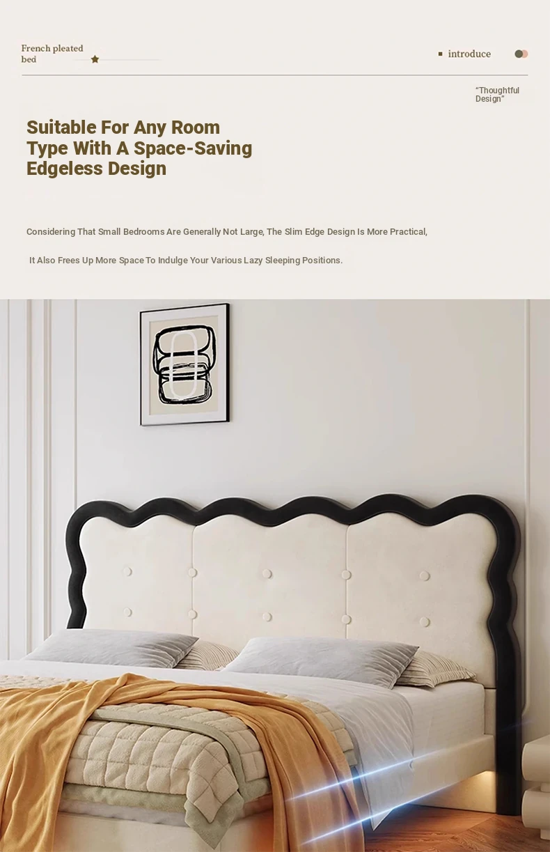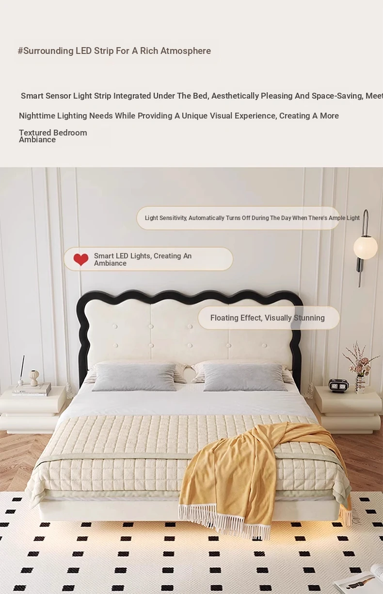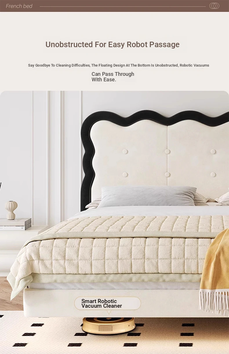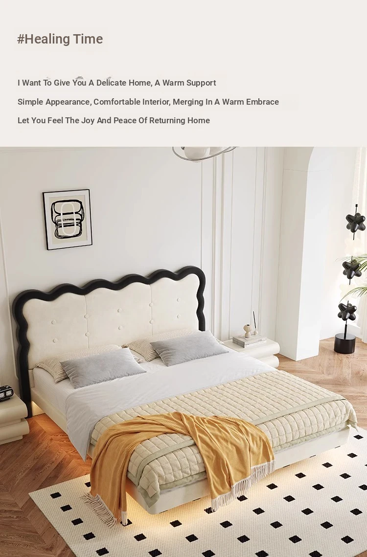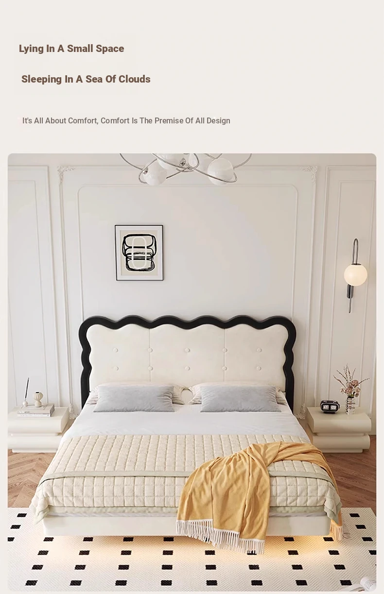 Modern French-style Upholstered Bed - 1.8m Cream Floating Frame for Master Bedroom, Soft Fabric Double Bed with Edgeless Design, Perfect for Your Home Décor.