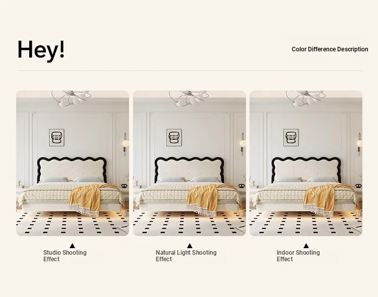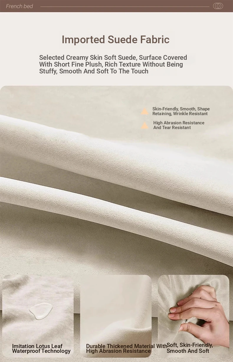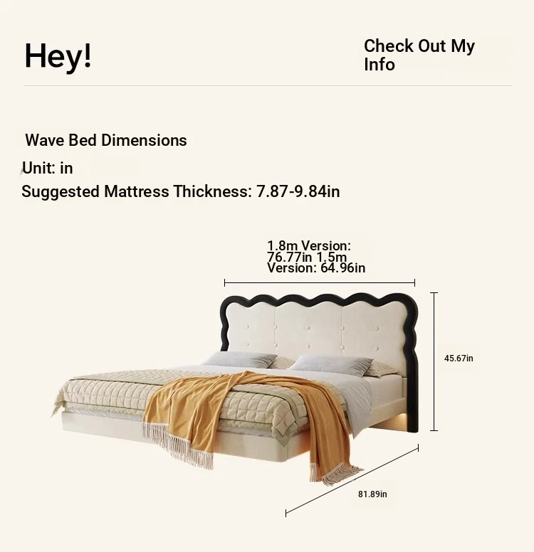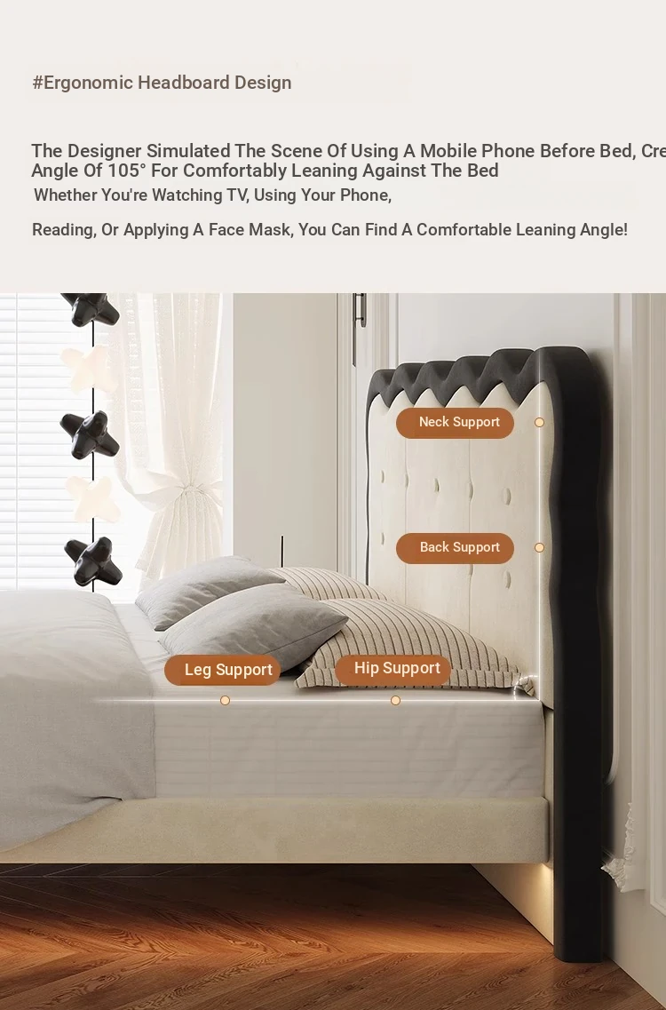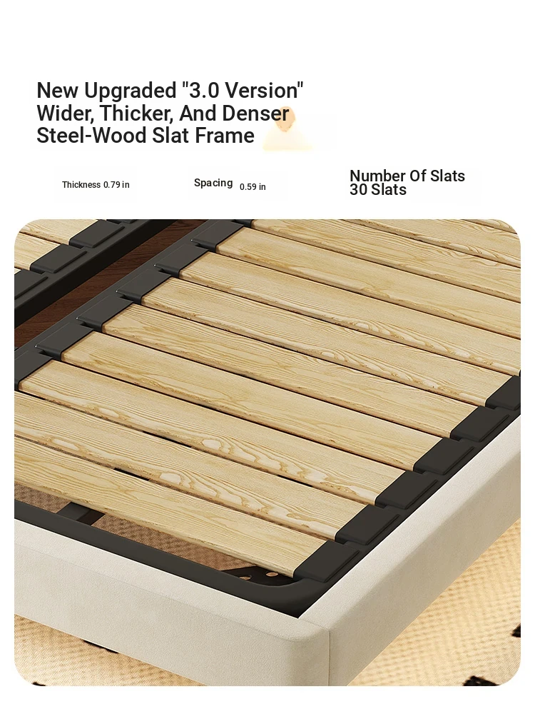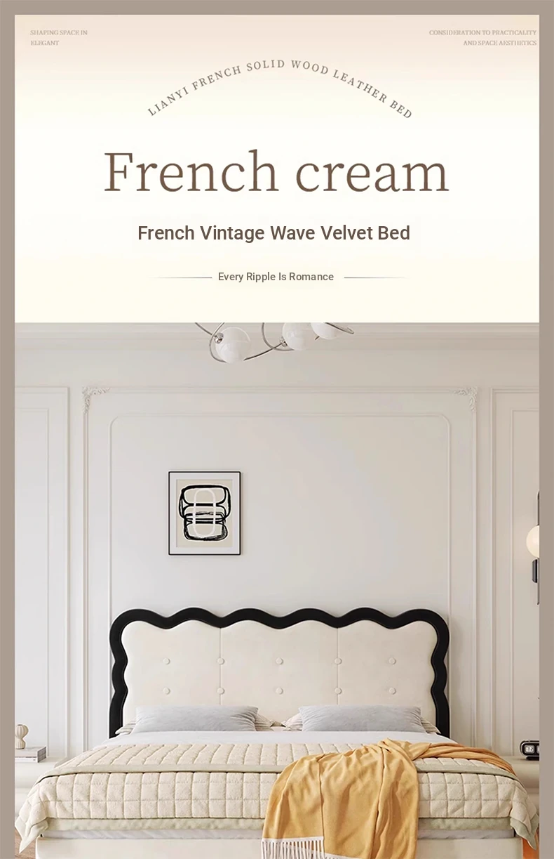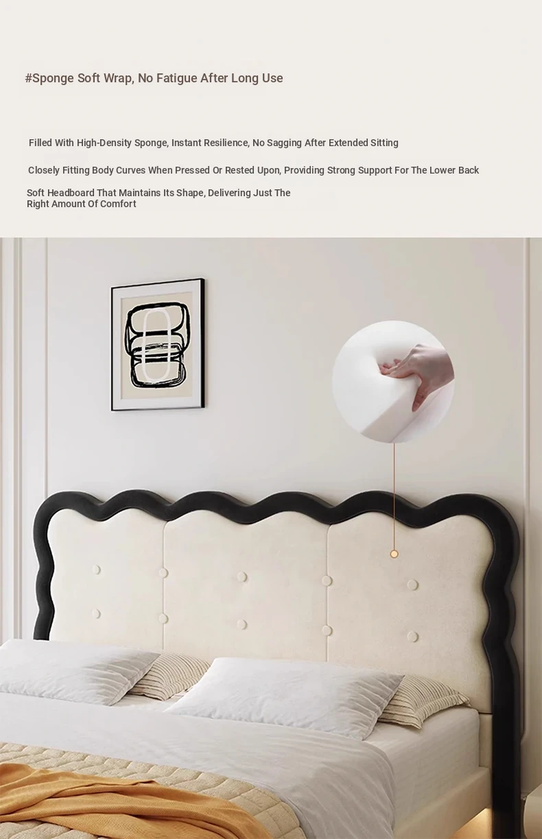 Modern French-style Upholstered Bed - 1.8m Cream Floating Frame for Master Bedroom, Soft Fabric Double Bed with Edgeless Design, Perfect for Your Home Décor.