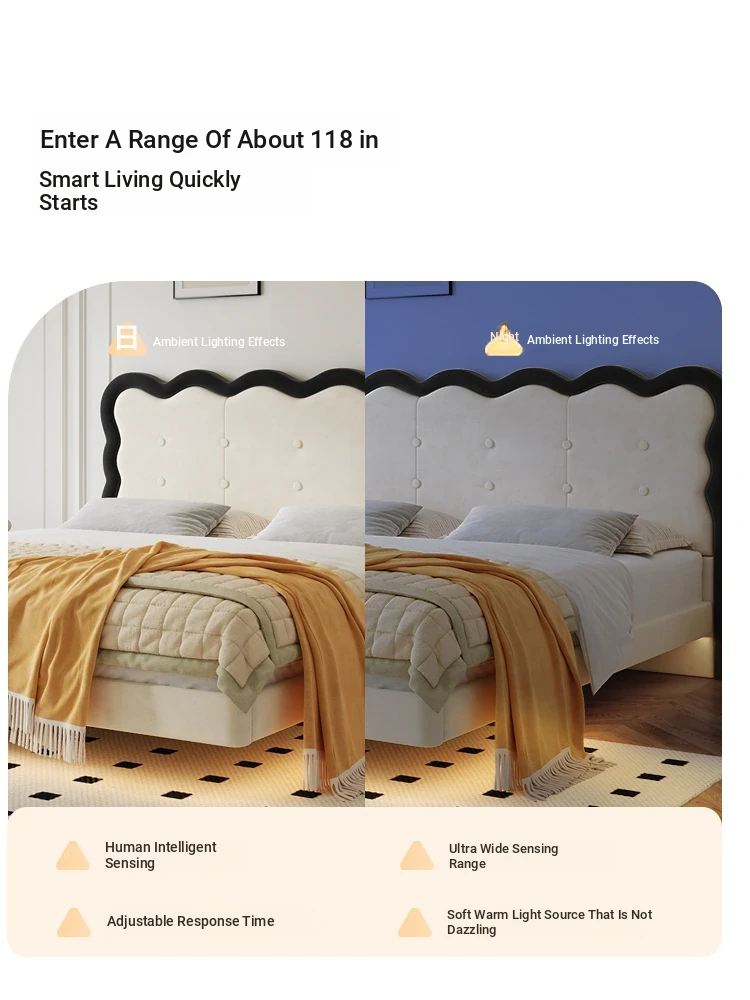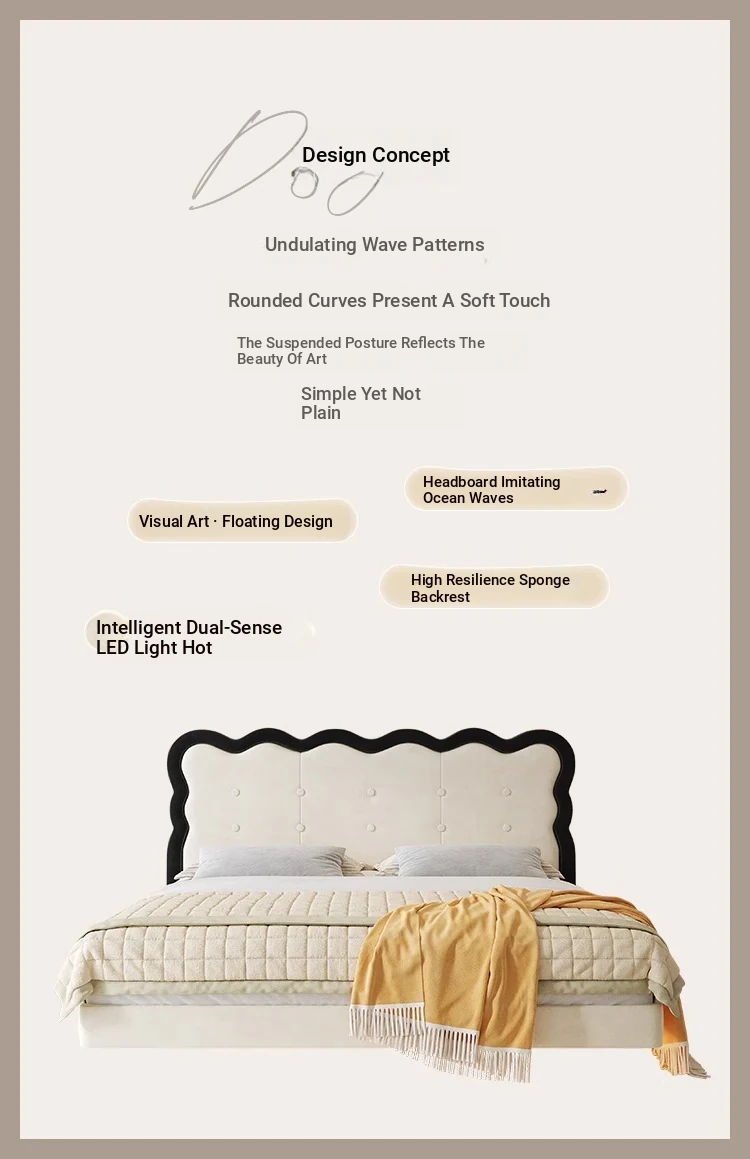 Ripple suspension bed without lights [encrypted solid wood row skeleton]]