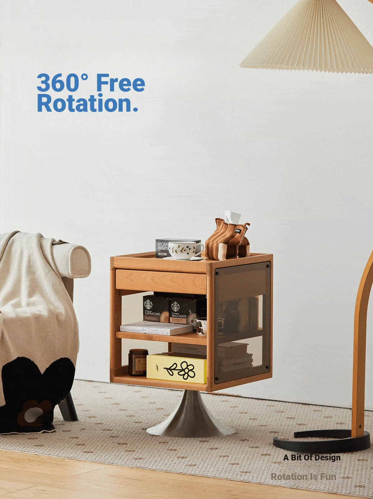 Nordic-Style Swivel Side Table - Partially Solid Wood Bedside Furniture for Modern Elegance