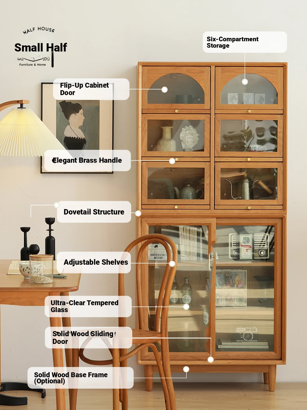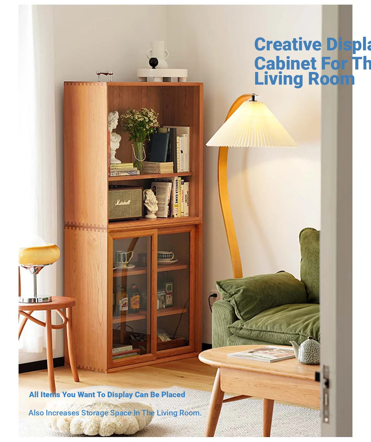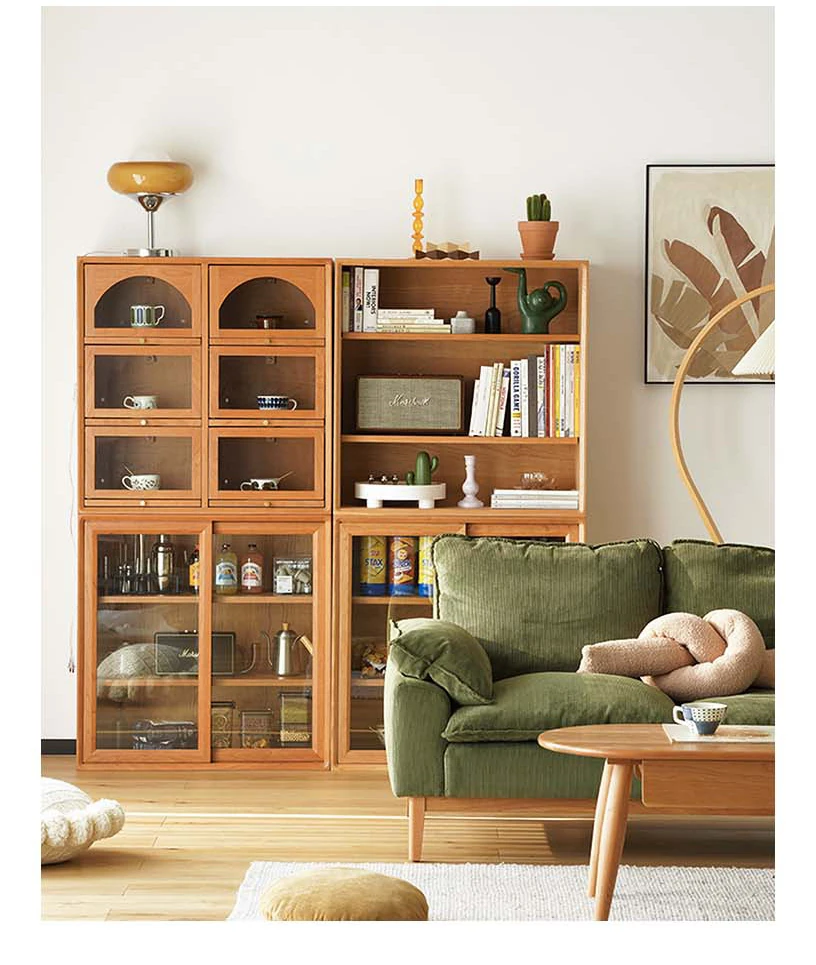Scandinavian-Japanese Glass Sliding Door Vintage Cabinet - Perfect Blend of Style and Function for Your Home