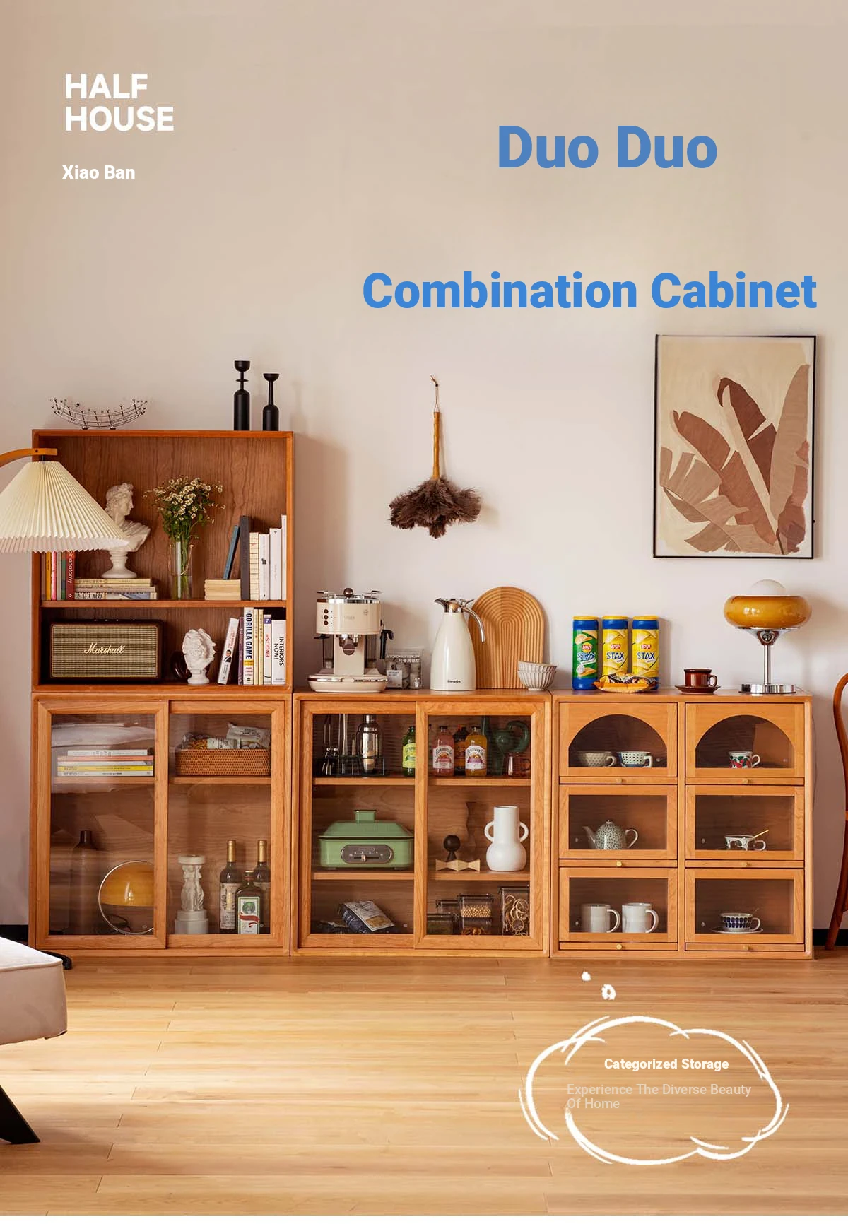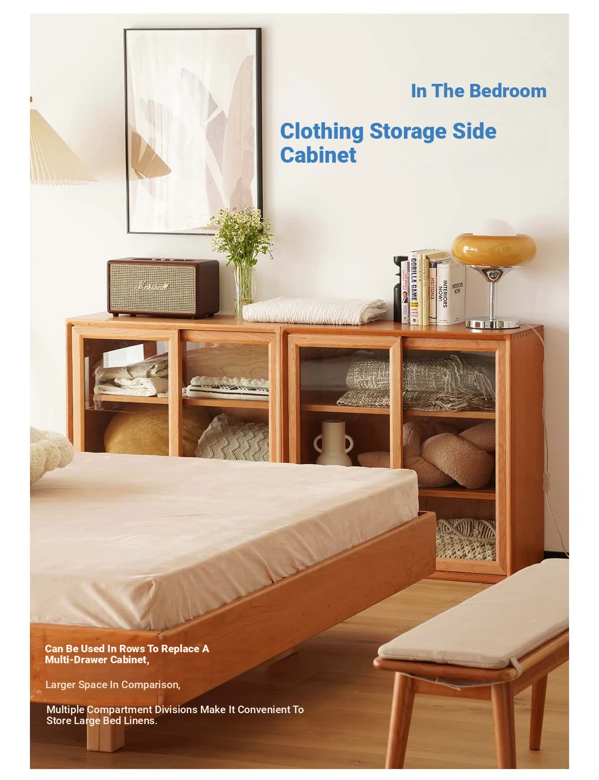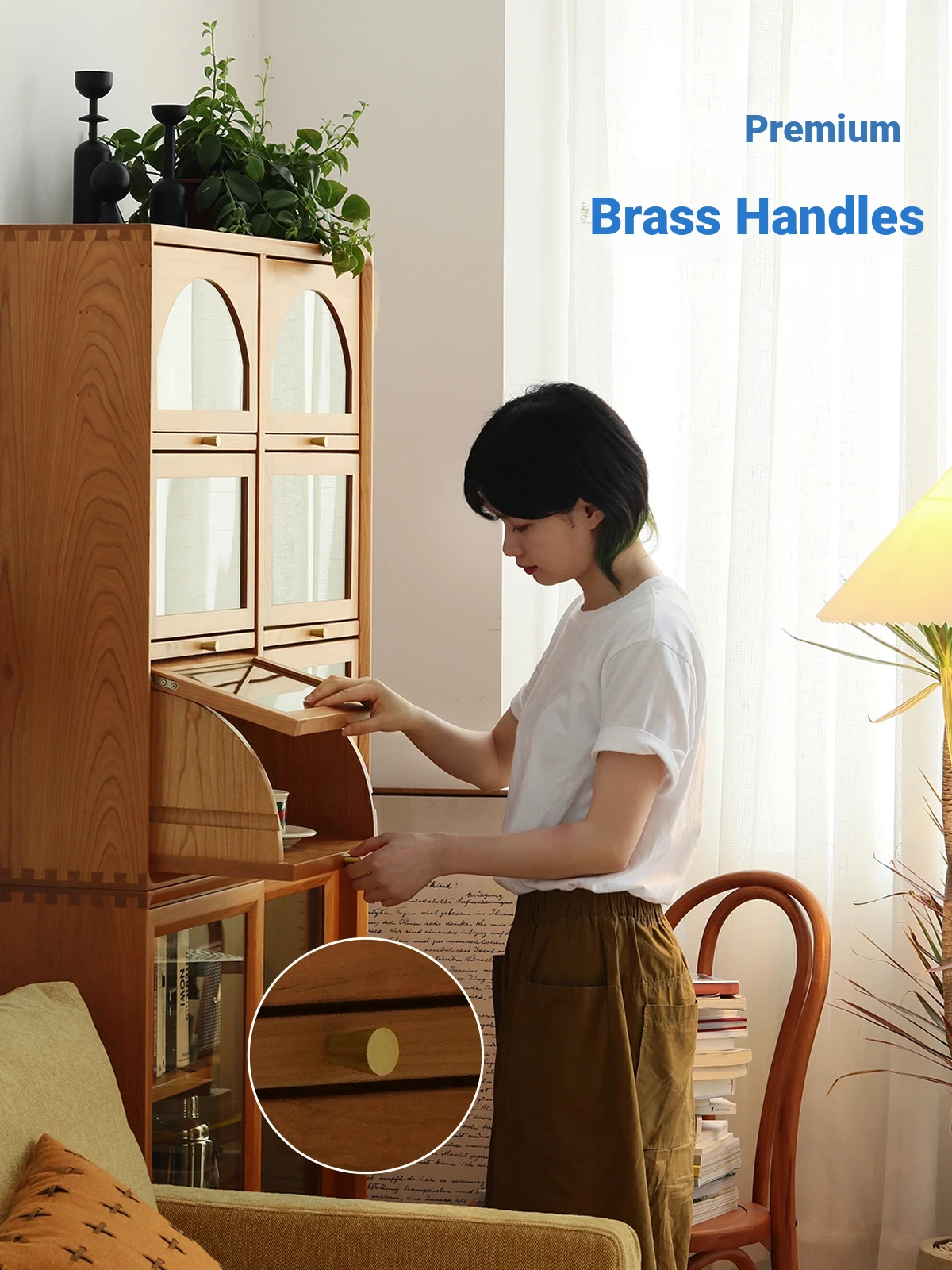 Scandinavian-Japanese Glass Sliding Door Vintage Cabinet - Perfect Blend of Style and Function for Your Home